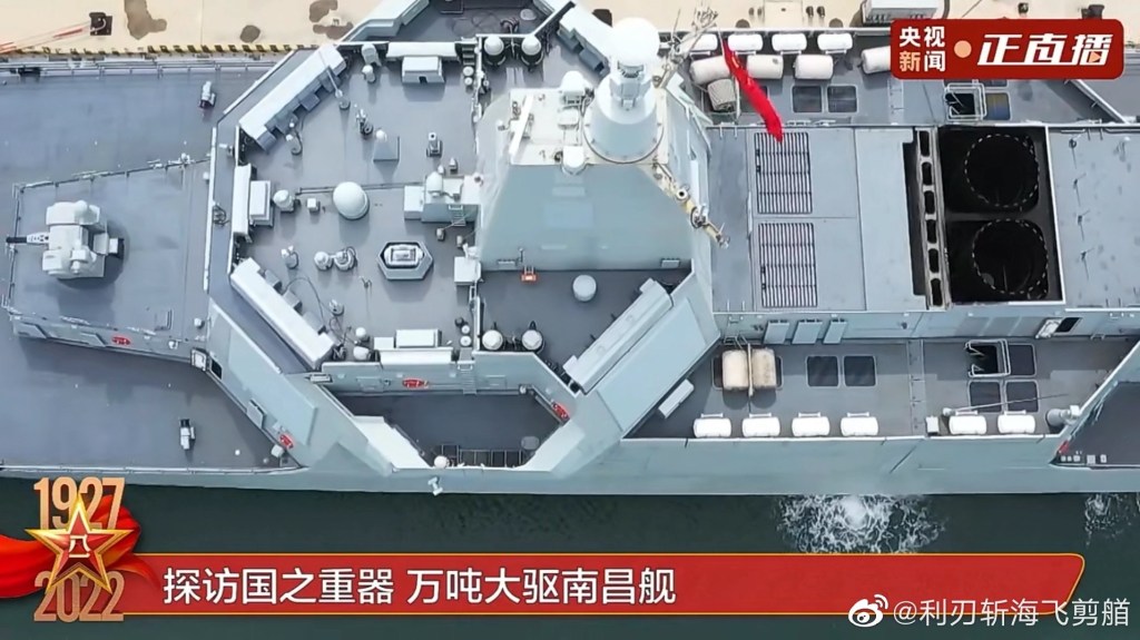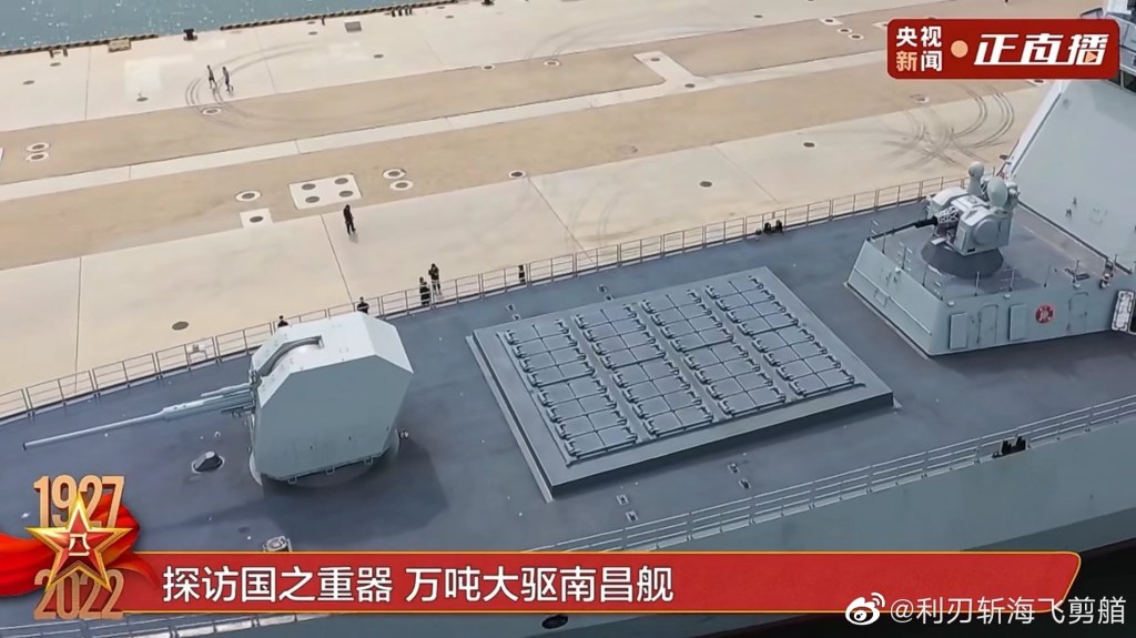 A look at the type 055s’s VLS cells located foreword. Also shown is the CIWS and 130mm turret.