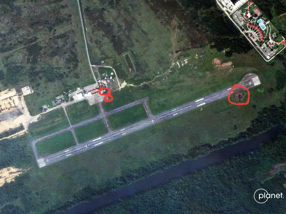 The first site I looked at was from the airport located in Higuerote. Images taken after the strikes show remains of what we believe were light airplanes and trucks that were used to block off access to the runway. Remains of a Buk air defense system command vehicle were also spotted.