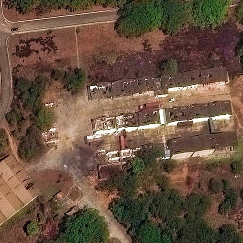 These destroyed buildings match the ones from the satellite imagery.