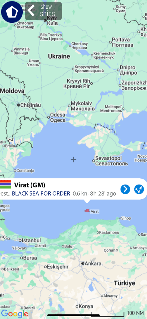 The Russia shadow fleet oil tanker Virat stopped near Turkey after it was attacked by Ukranian sea drones.