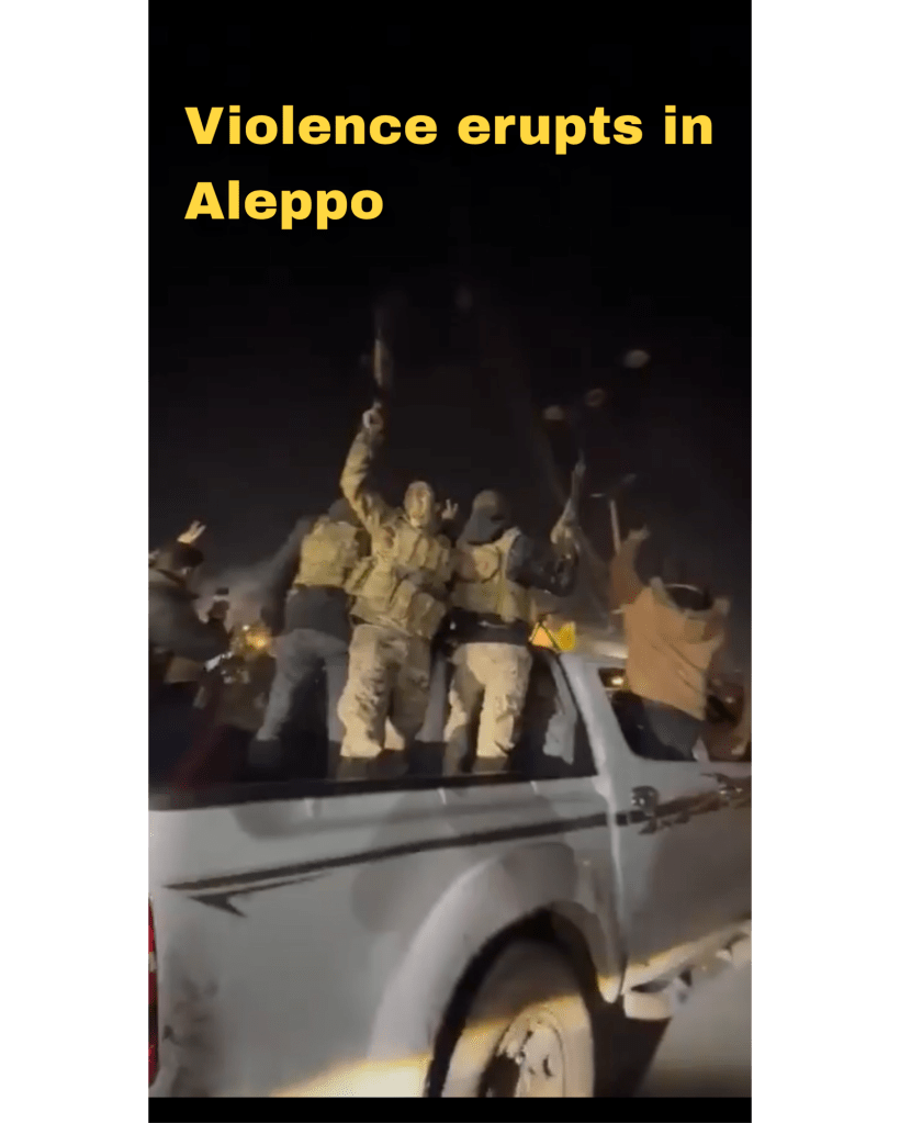 According to the SDF, who deny what Damascus forces are claiming, said that the attack started when factions affiliated with the Ministry of Defense of the Damascus Government opened fire on the joint security checkpoint at the Sheihan Roundabout in Aleppo. The Syrian Army started shelling Kurdish neighborhoods using tanks and MLRS artillery which is shown in the video below.