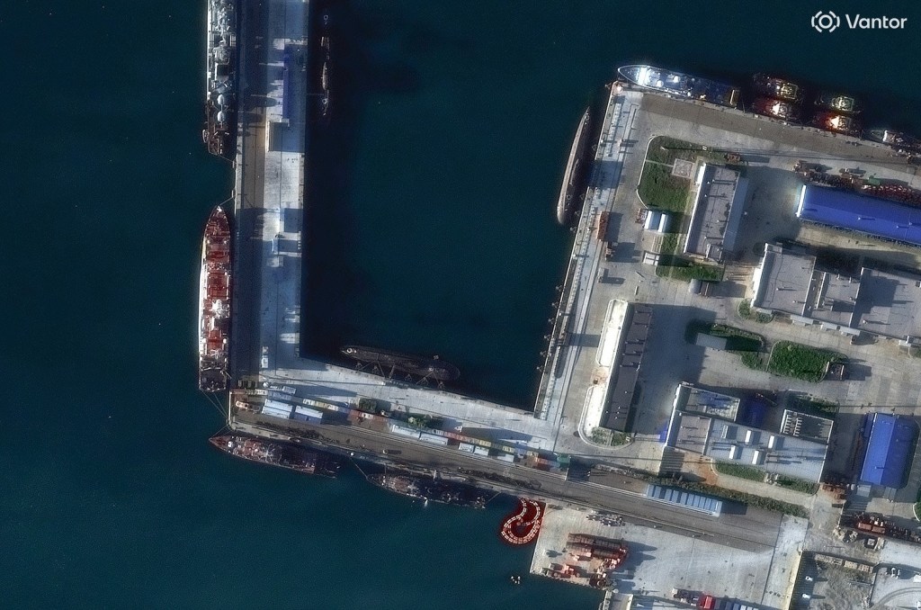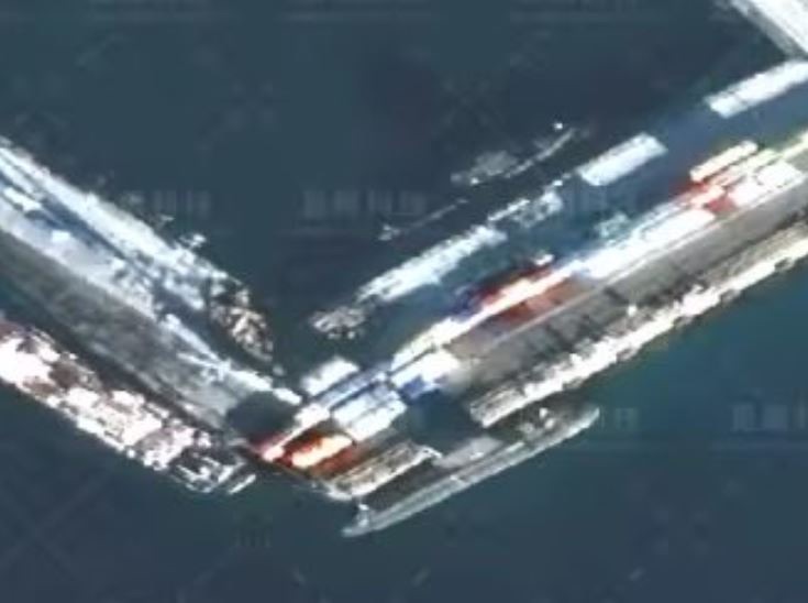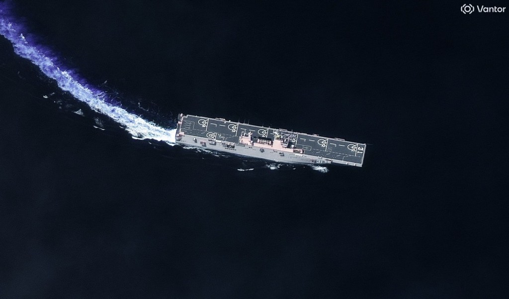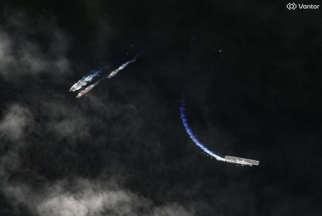 The images are from US satellite company Vantor and show a the Type 055/Renhai-class cruiser Yan’an, an unidentified Type 054A/JIangkai II-class frigate, a Type 903A/Fuchi-class replenishment ship, the Luomahu, and the Type 075/Yushen class LHD, the Hainan.