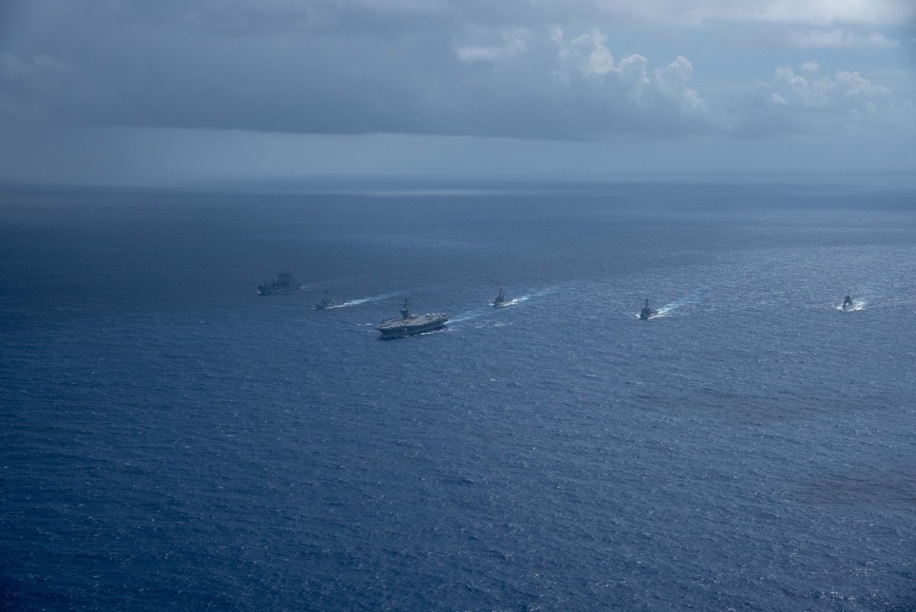 The U.S. has built a sizable force in the region as shown in the image below. Five Arleigh Burke Guided missile destroyers and two Ticonderoga-Class Guided missile cruisers make up the bulk of the missile attack capability that’s close by. We also have at least one submarine, likely two of the carrier came with her own as an escort.