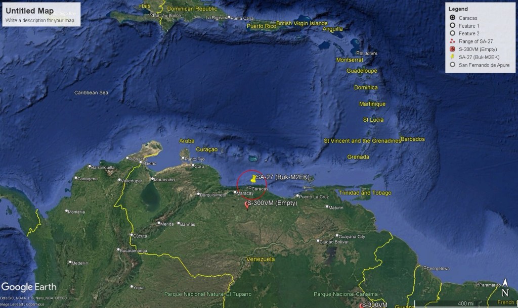 Venezuela’s military isn’t super modernized so a lot of the equipment they are working with are older Soviet/Russian systems, including S-300VM’s (NATO-SA-12A Gladiator) which Maduro’s predecessor got in a deal to loan russia a couple billion dollars in the 2010s.Its reported they only have a limited number of these (Possibly 4 launchers) These have likely been repositioned to protect the capital and other strategic sites around the country. The range of these depends on the missile, which are the 9M83M and 9M82M. These are claimed to be able to hit targets out to a range of 81 miles and 124 miles, respectively. Each launcher holds 2 missiles each, and takes around an hour to reload.