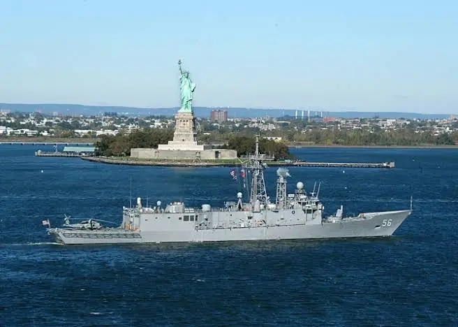 Oliver Hazard Perry-class USS Simpson (FFG-55) passing the Statue of Liberty in New York City.