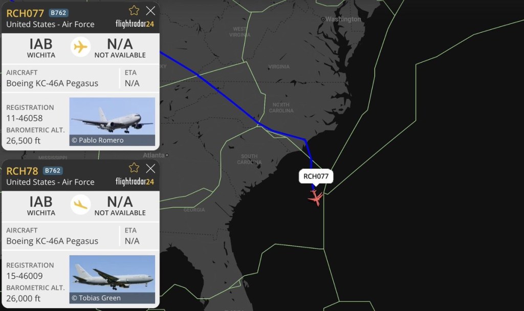 Another event that was missed yesterday was a transfer of several aircraft (possibly Growlers) from Naval Air Station Whidbey Island in Washington State to the Caribbean. Their presence was noted by flight trackers who also often listen to radio comms between aircraft and Air Traffic Control. They were ferried to the Caribbean by two KC-46A Pegasus aerial refueling jets.