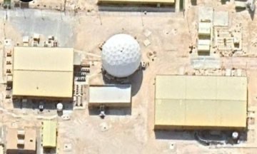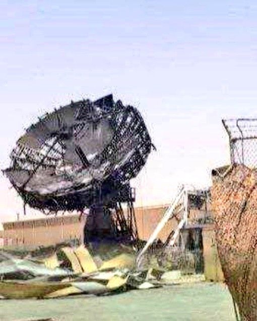 Above shows a before image of the exact area that received damage. What you’re looking at is a satellite antenna for the Wideband Global SATCOM (WGS) network. It is not a radar as some have reported.