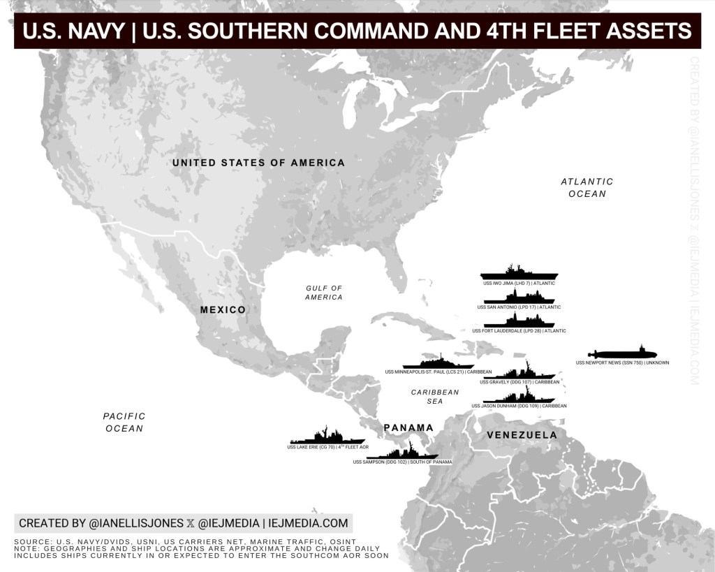 So far eight ships and a submarine have been deployed to the 4th fleet/Southern Command [SOCOM] AOR. Making this the largest confrontation between Venezuela and the U.S. in years.