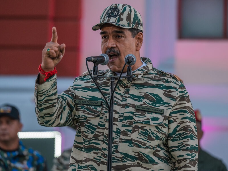 Nicolás Maduro speaking to his supporters about the American forces heading towards Venezuela.