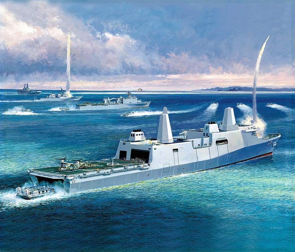 These ships are designed as survivable and stealthy transports for ground forces. As shown in the image above they are also designed around the idea of launching the marines hovercraft to quickly transport massive amounts of marines and their equipment to the shores.