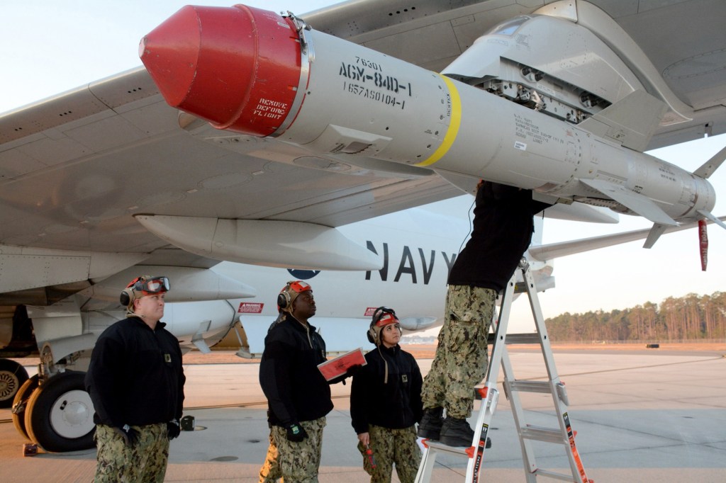 U.S. navy P-8 Poseidon shown with the AGM-158 LRASM. United States Navy P-8A Poseidon with a AGM-84D-1 Harpoon missile. The 84D-1 is an upgraded an extended range version of the Harpoon.