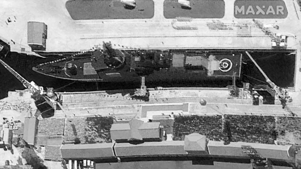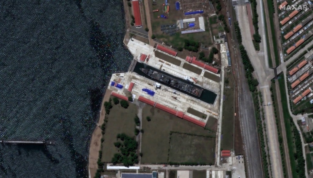 After last months disaster of a launch North Korea seems to have quickly managed to repair their new Choi-Hyun class guided missile destroyer. Images from Maxar show it during its relaunching ceremony.