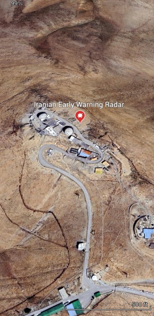 Iranian Early warning Radar struck in the Hamadan providence. Shown several hours after it was struck when the sun came up. A majority of the strikes happened in the early morning. 35.185878°N 48.271270°E